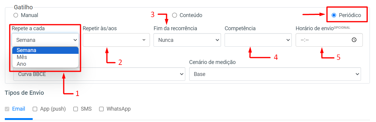 5 - Horário de envio: opcional, podendo definir caso se tenha horário para o envio.
