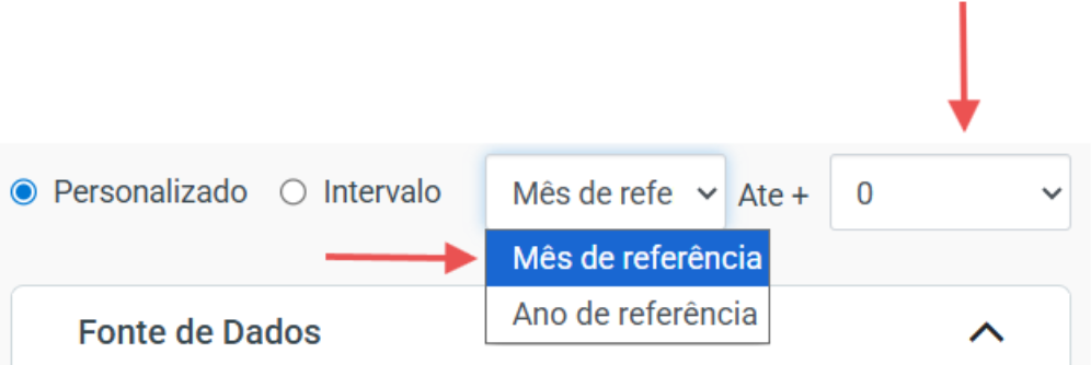 Personalizado: É definido o mês ou ano de referência, e a quantidade de meses ou anos seguintes, conforme a definição anterior, esse séra o período escolhido. Sendo referência o mês ou ano do filtro da tela.