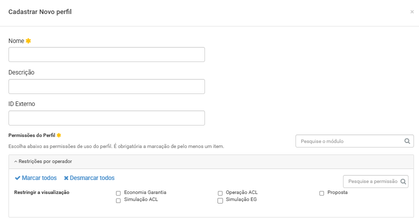 Nesta tela, é possível criar quantos perfis forem necessários, de acordo com a estrutura e as necessidades da empresa.
