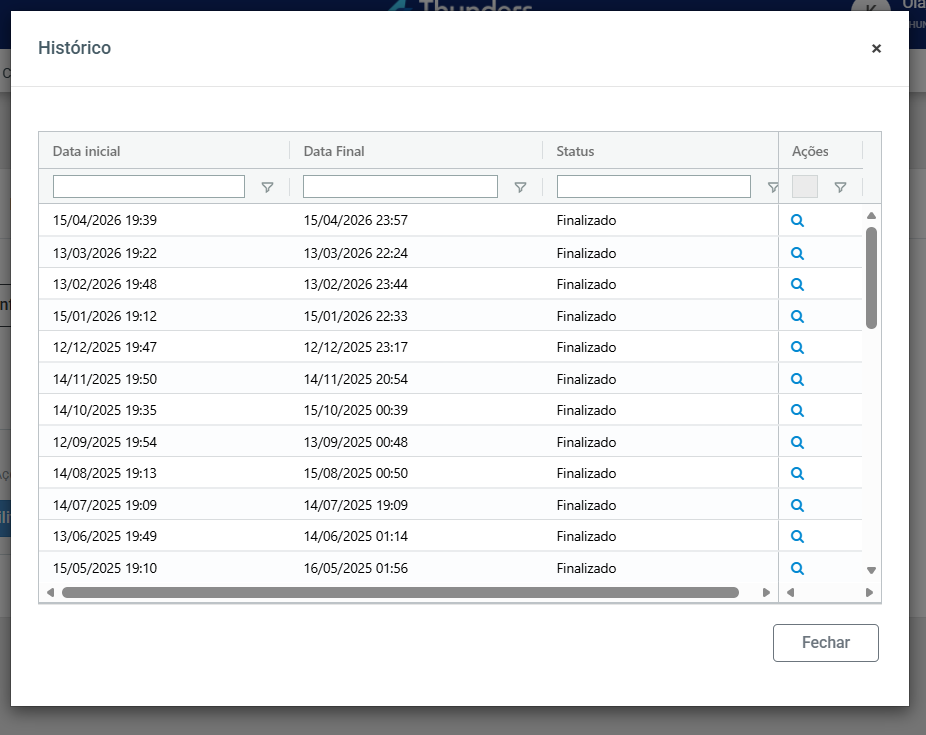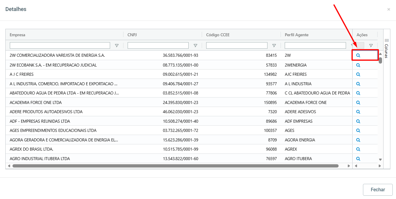 Selecionando o ícone em formato de lupa, ao final da linha, será possível visualizar o detalhamento dos agentes que foram atualizados e, para cada agente, também haverá uma lupa com todas as informações que foram inseridas ou atualizadas.